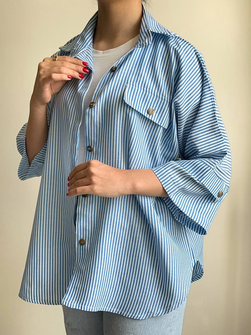 🦋شومیز راه راه کیمونو پاگون